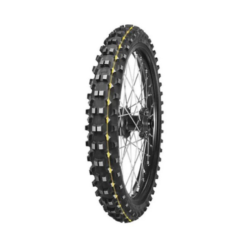 The Mitas C-19 Yellow is a motorcycle tire specifically designed for off-road use. It features an aggressive tread pattern that provides optimal grip on various surfaces such as sand, mud and loose soil. The rubber compound is designed for durability and wear resistance, with the yellow marking indicating a medium to hard compound that offers an ideal compromise between traction and durability. The robust design ensures high stability and reliability, even at high speeds and in demanding driving situations. Reinforced sidewalls provide additional protection against damage from stones and other obstacles. The C-19 Yellow is particularly suitable for enduro and motocross riders who place high demands on their equipment and ride in a wide variety of terrain conditions. With excellent grip, durability and versatility, the Mitas C-19 Yellow is a first-class choice for demanding off-road riders.